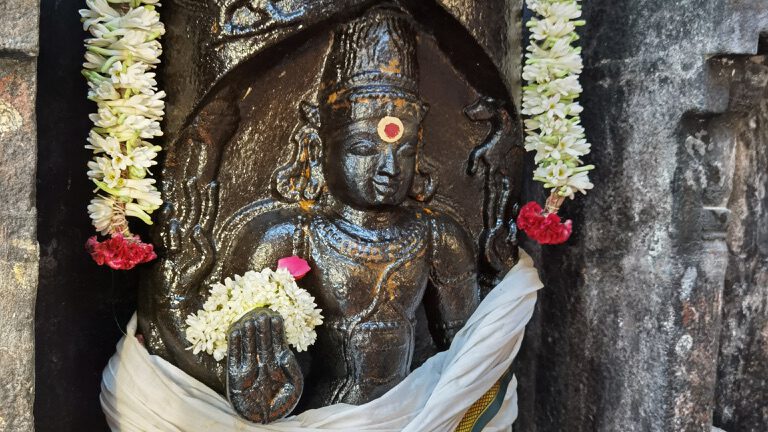 The term “Moolavar” refers to the primary deity of a Hindu temple, the main idol enshrined in the sanctum sanctorum. In the context of the Irumbai Temple, Sri Mahakaleswarar is the Moolavar, the presiding form of Lord Shiva worshipped here. “Maha” signifies greatness, while “Kala” denotes time, and “Eswarar” is a title for Shiva, the lord. Together, Mahakaleswarar represents the grandeur of Shiva as the supreme lord who transcends time and governs the cosmic rhythms of creation, preservation, and dissolution.